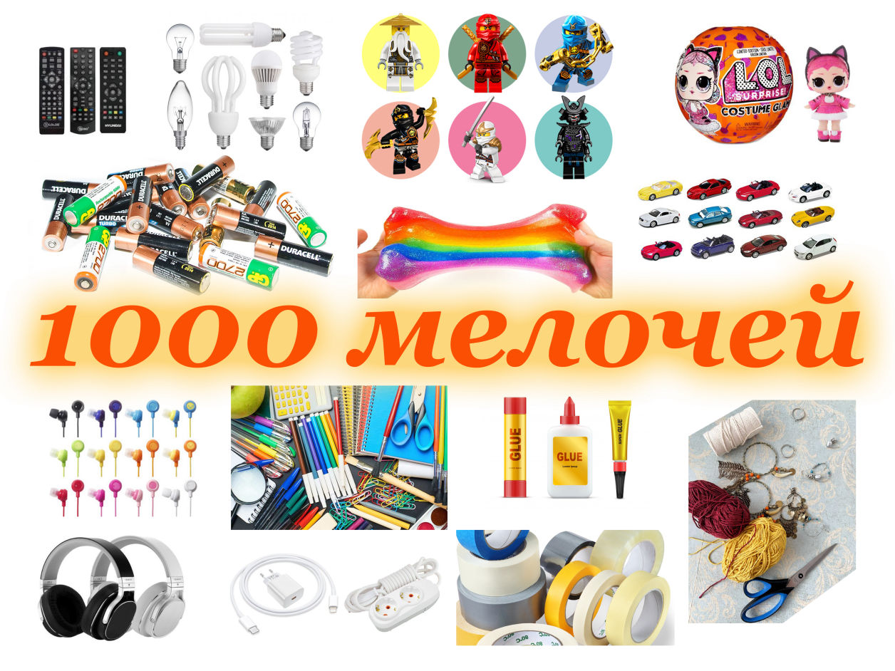 лампочки, удлинители, клеи, изолента, ручки, карандаши, детские игрушки, флешки, наушники, зарядные устройства и многое другое...